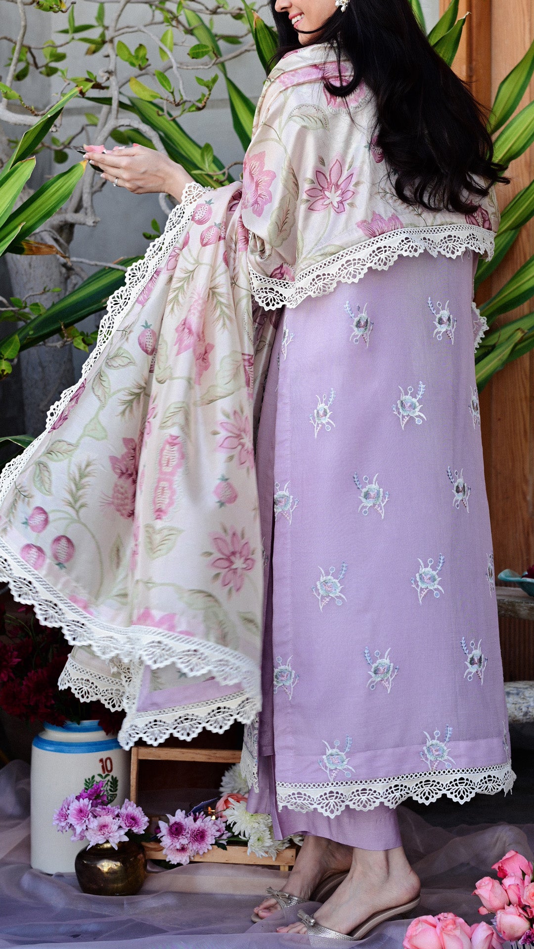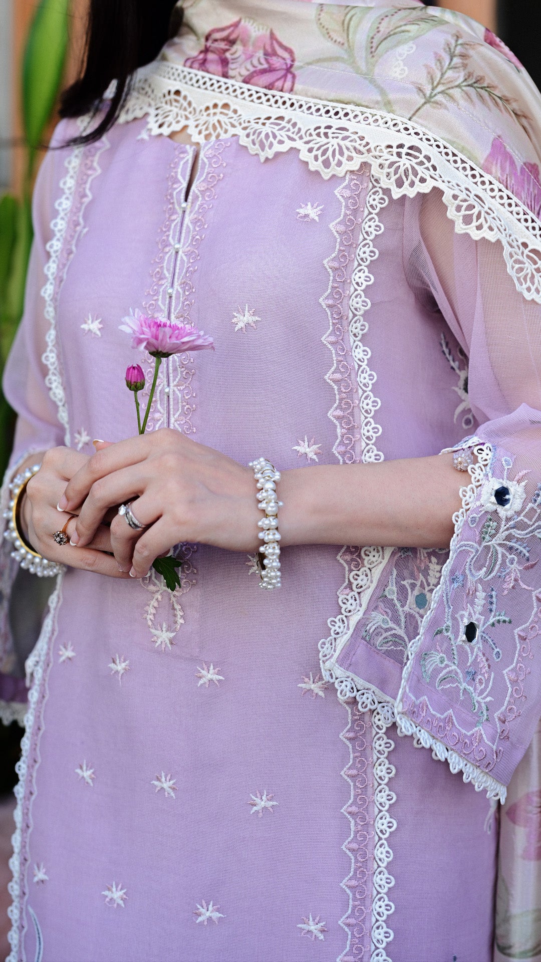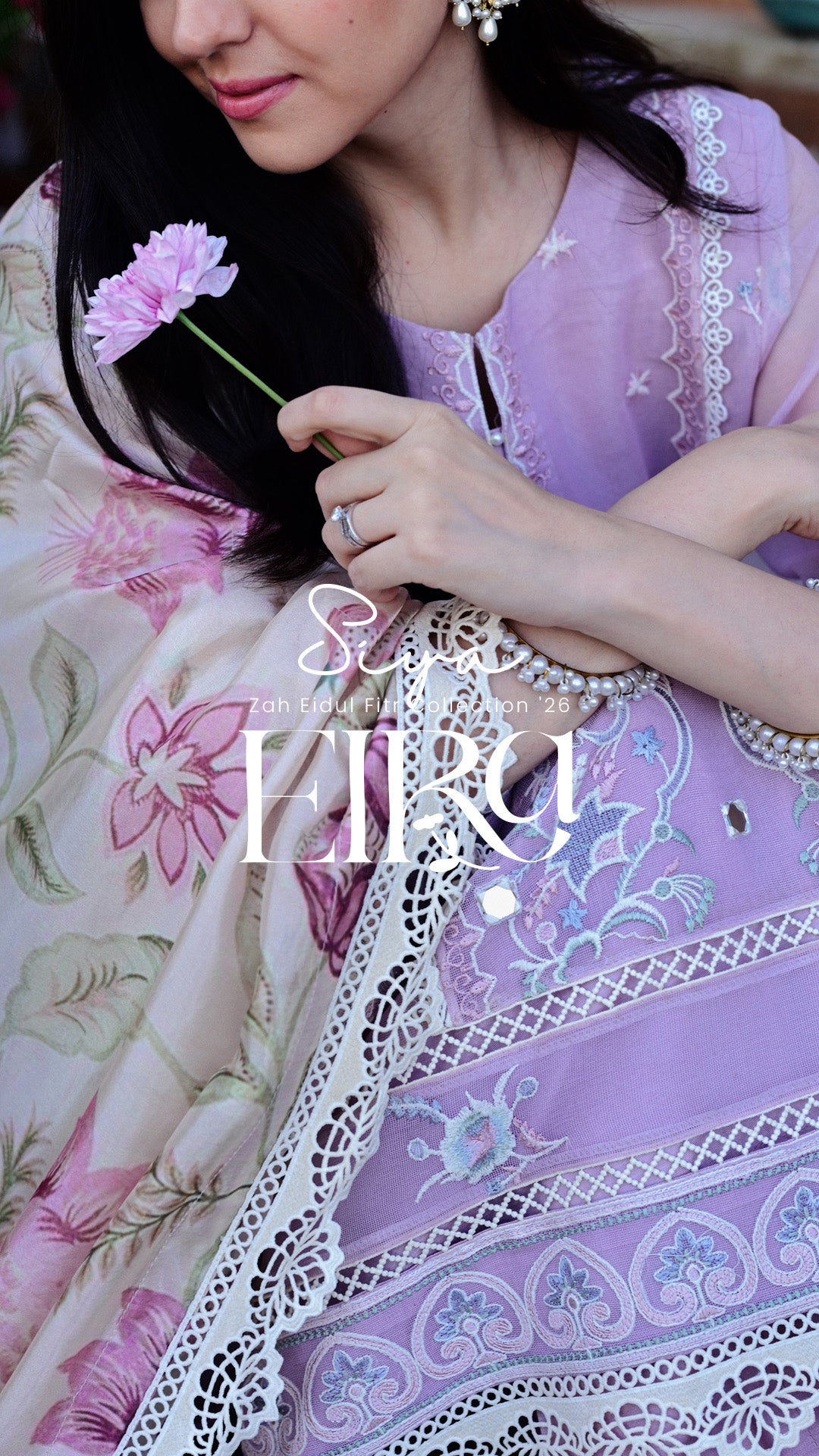 Created for the serenity of Ramadan evenings and the celebration of Eid, this lilac ensemble is a graceful addition to a thoughtfully curated festive wardrobe.